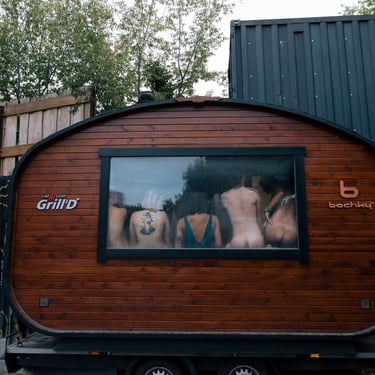Connecting a sauna to a club, with wellness interventions such as massage, aufguss and aromatherapy, Aufguss was a collective experience conceived By Naya de Souza, in collaboration with JULIAN CURICO and ELIAS @DUMPBERLIN @BOARBERLIN, with performances by MANDHLA NDUBIWA, ISU MIGNON MIGNONNE, SHEHRAZAD SIDRED.